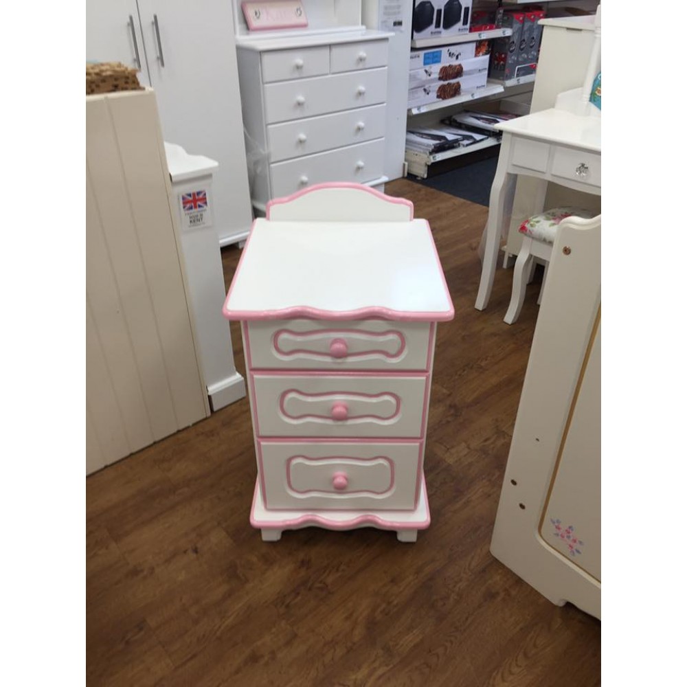 3 Drawer Bedside Unit White and Pink