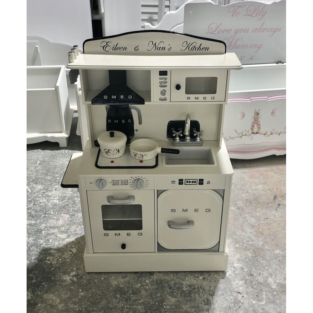Stunning play kitchen given a make over to match mummy's kitchen! Smeg items can be any colour. Added side shelf. Replacement bottom plinth