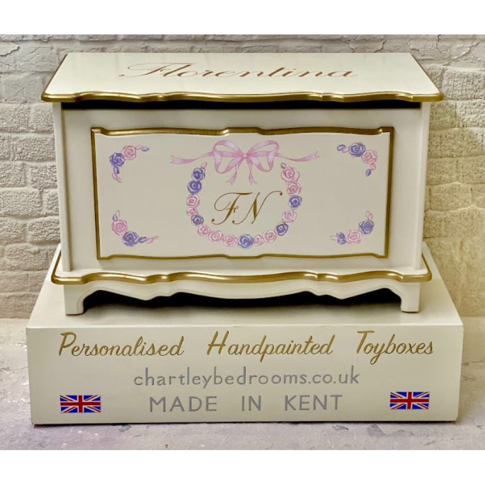 Toy Box With Hand Painted Blossoms And Bow