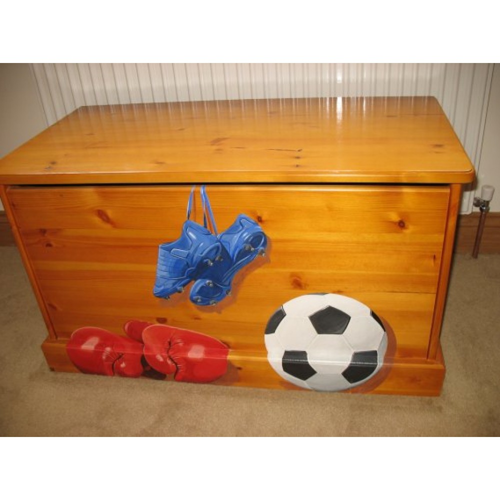A totally amazing boys pine 3ft toy box! Hand painted - real looking artwork by Andrew - Combining this little boys favourite pastimes. Any items can be painted - please call to discuss in more detail your requirements, we are open 7 days a week.